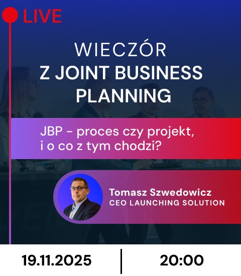 Podczas live z Katarzyną Młynarczyk - ekspertką, która pomogła ponad 80 firmom w opracowaniu winning strategy - zobaczysz, jak skrócić czas wdrożenia JBP z miesięcy do tygodni, zaangażować całą organizację w proces planowania i uniknąć kosztownych błędów wdrożeniowych. Pokażemy Ci dokładnie, jak te narzędzia przyspieszą Twój Joint Business Planning i zbudują trwałą przewagę na rynku.